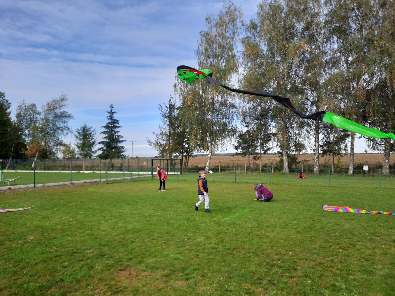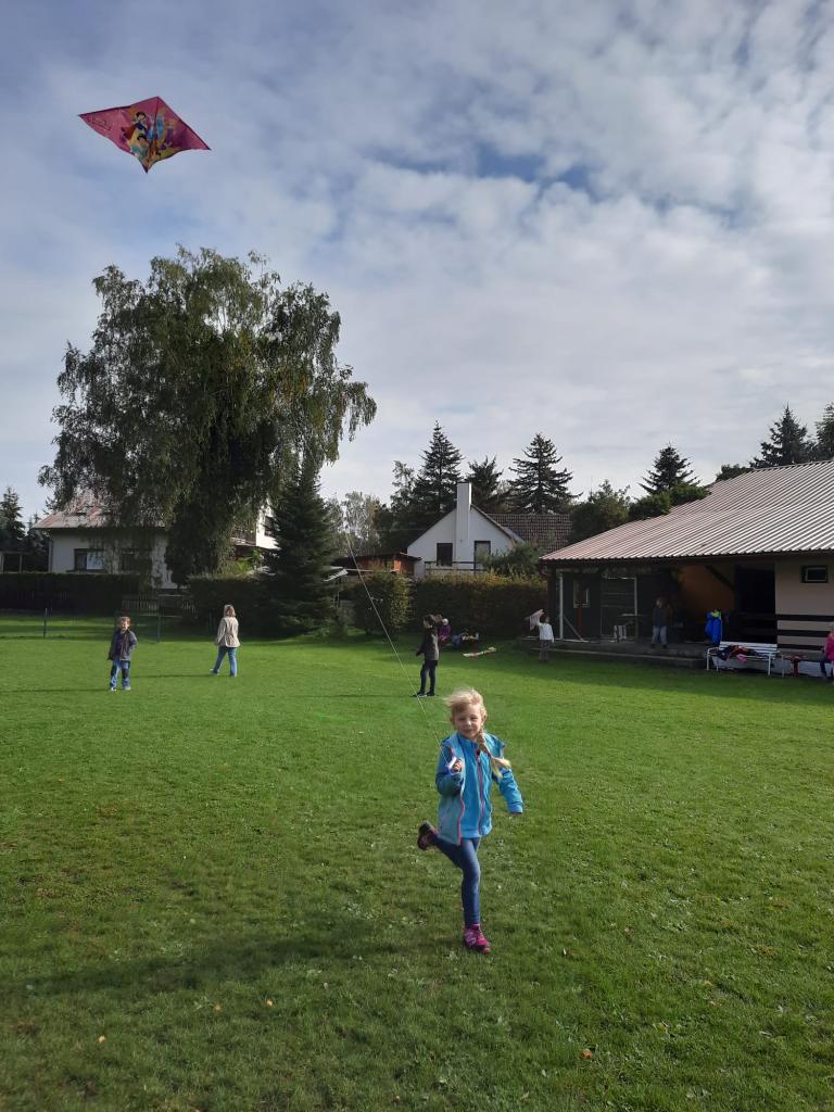 V pátek 30. září jsme se vydali na hřiště pouštět draky. Přestože téměř nefoukalo, podařilo se nám draky vyhnat do nebe a den jsme si užili.