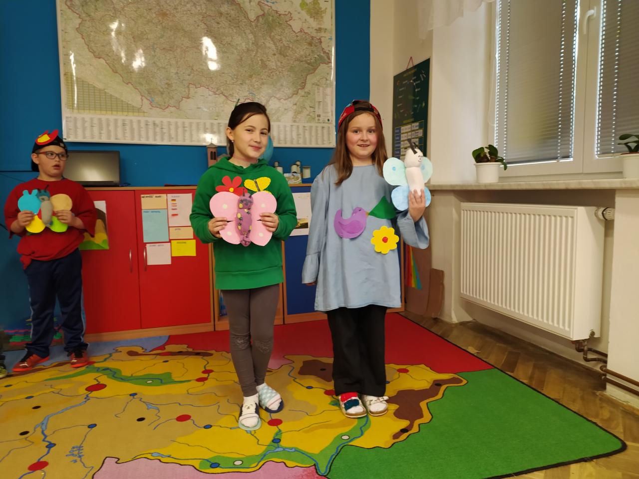 Mladší žáci si při pracovních činnostech připravili jarní modely na módní přehlídku.