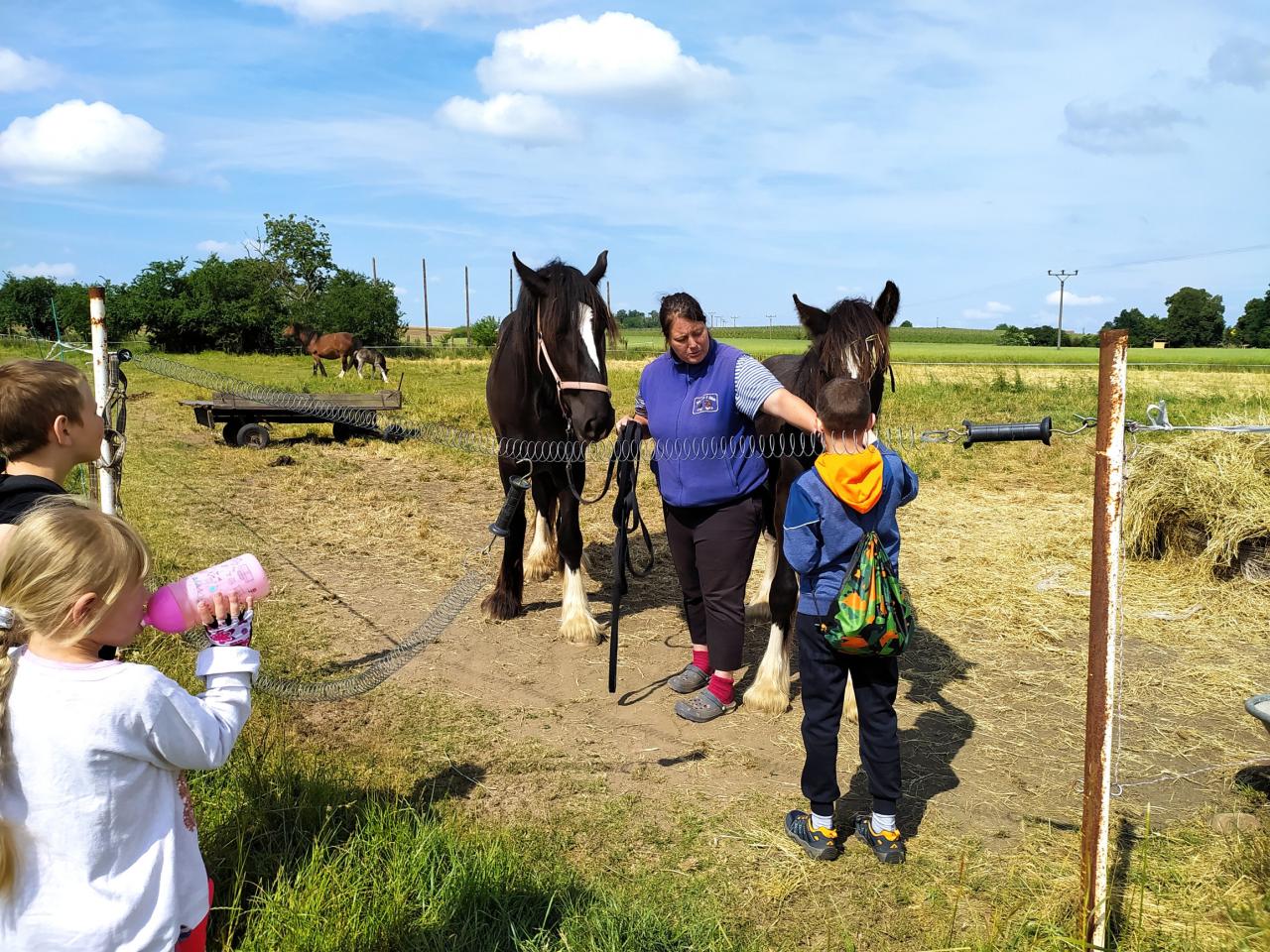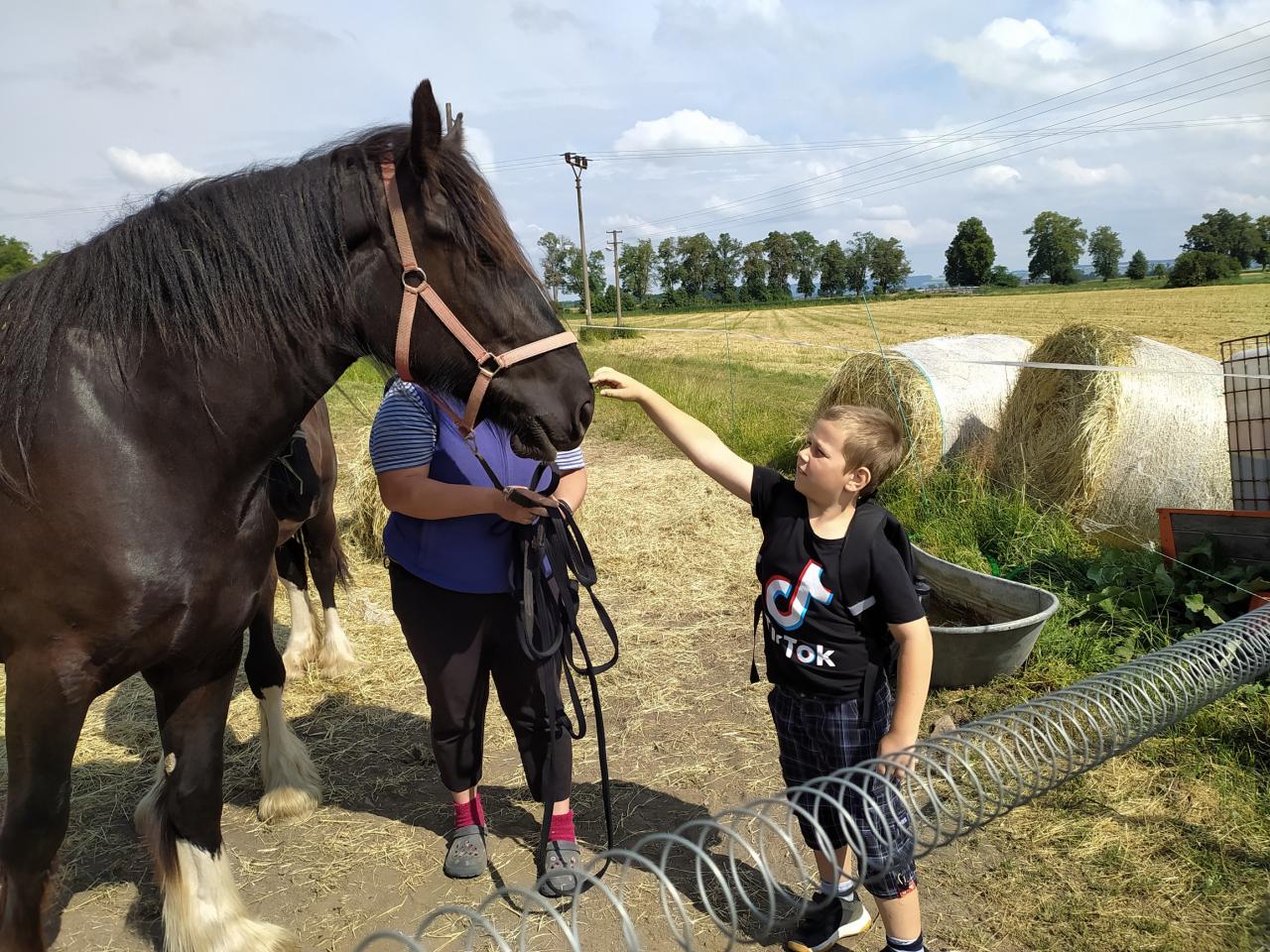 Na kole jsme vyrazili do Pšánek na lesní divadlo a za koňmi k paní Vandrovcové. Pěšky zase do Ostrova (také za koníky) k panu Duškovi...