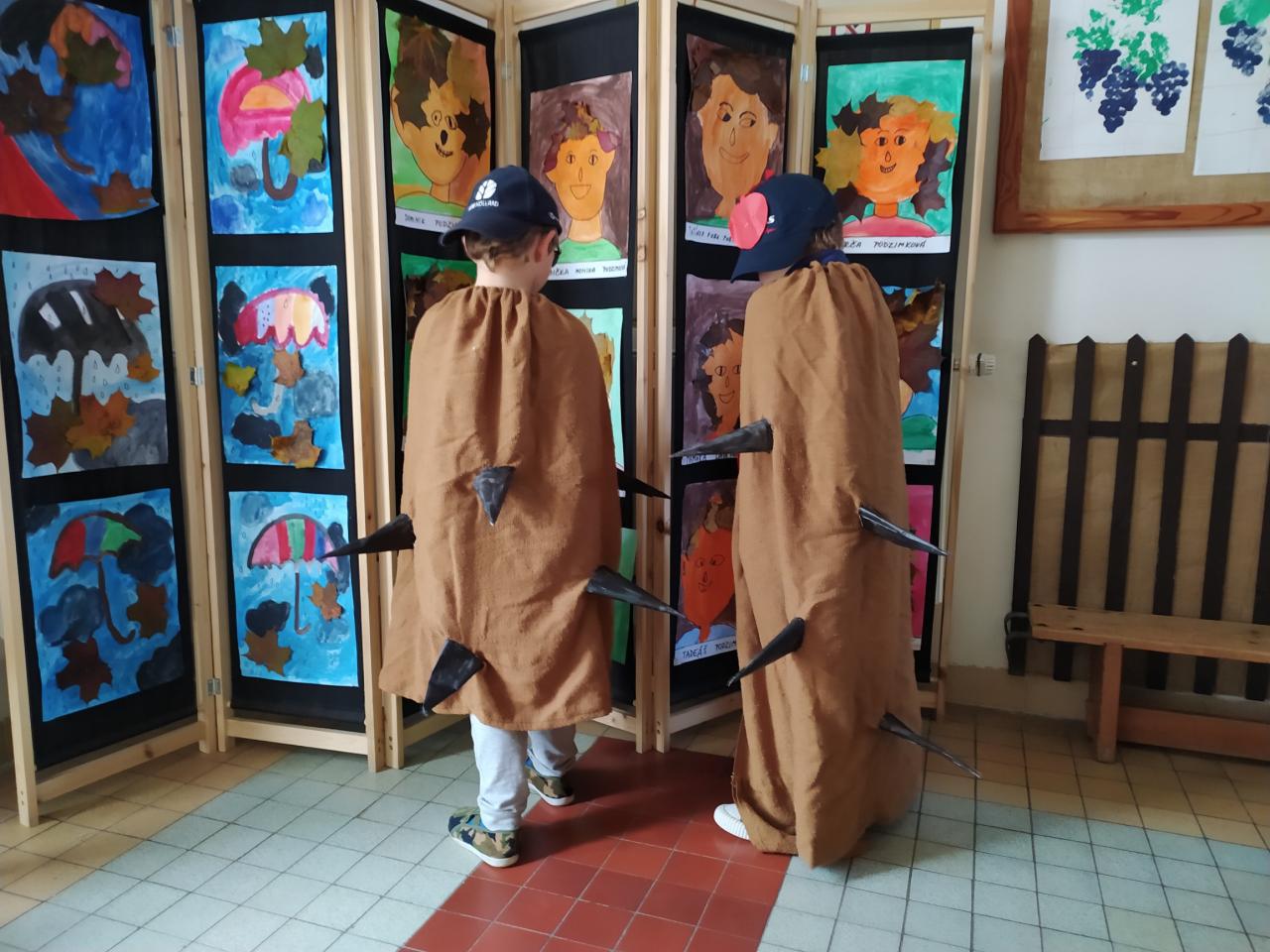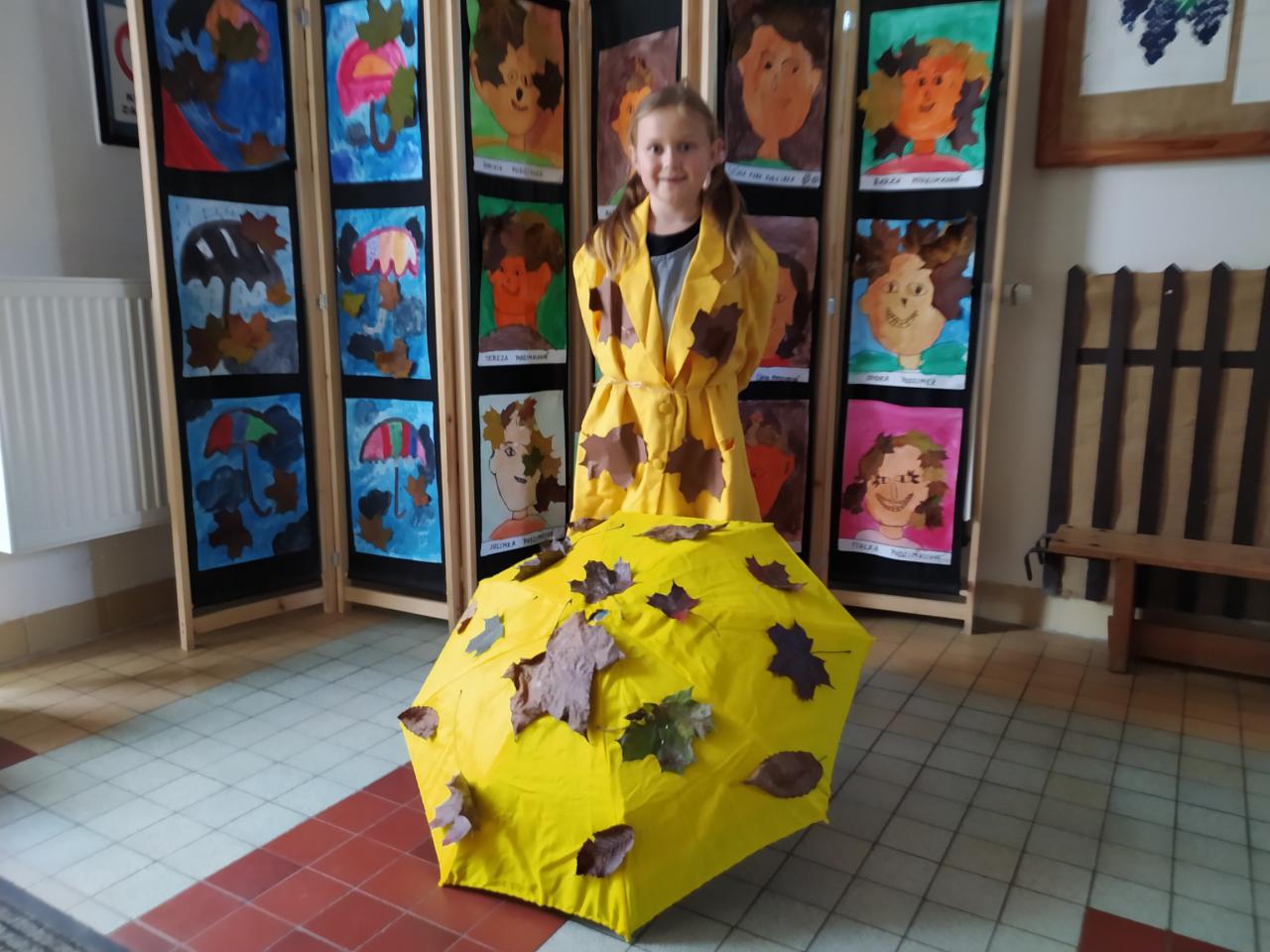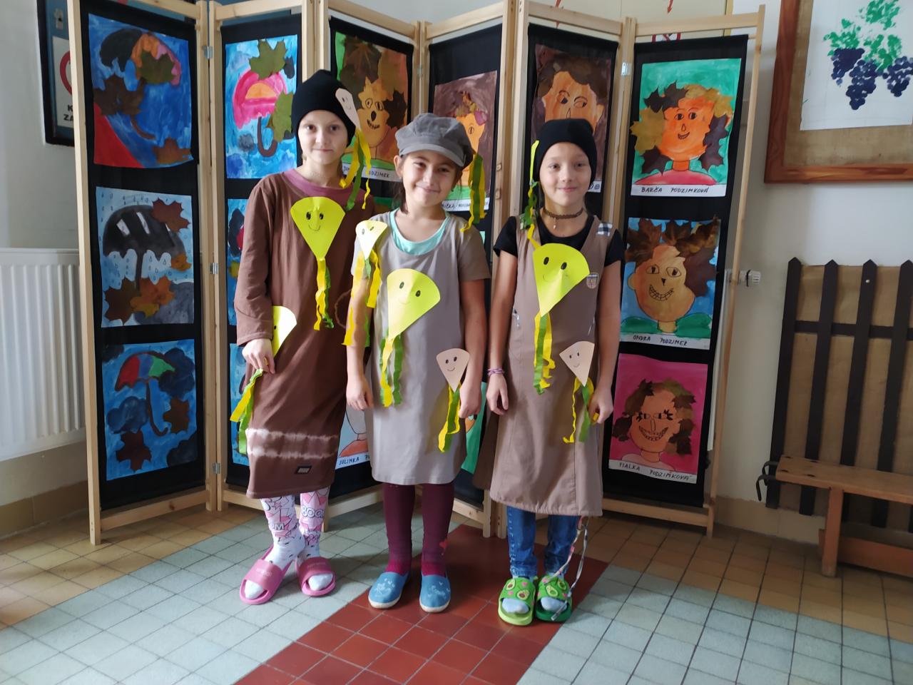 Při pracovních činnostech jsme si s mladšími žáky vyrobili podzimní modely na módní přehlídku.
