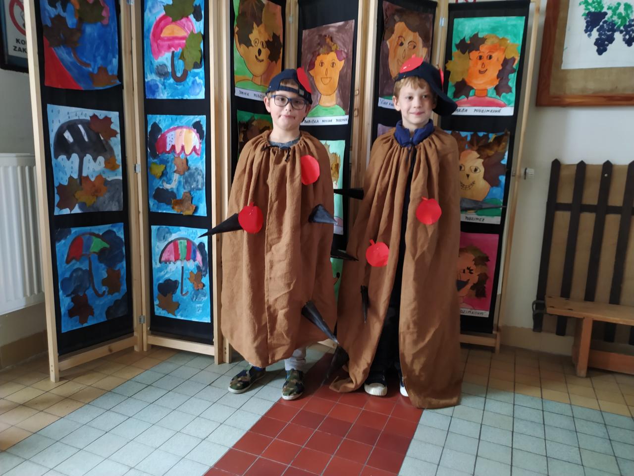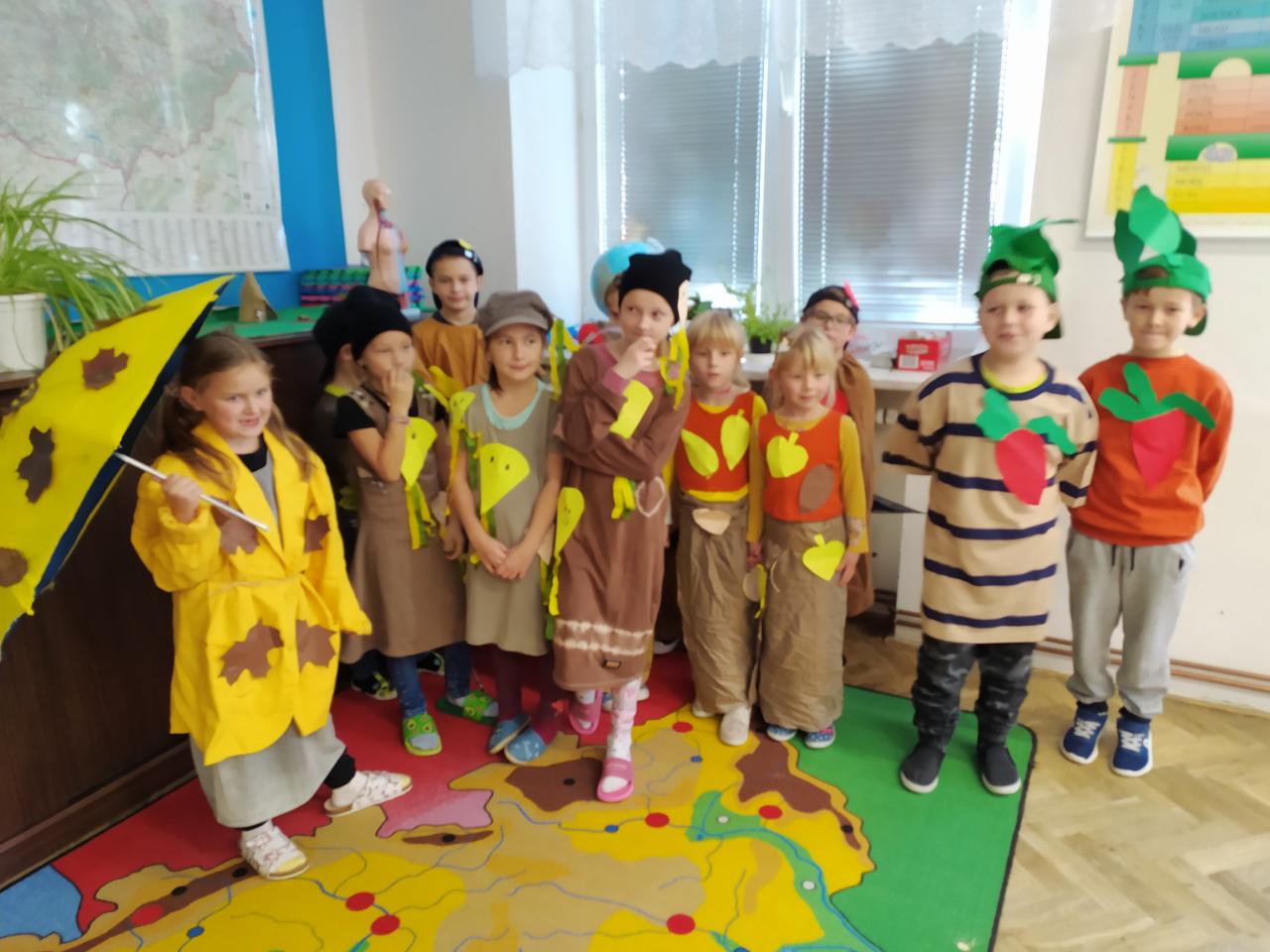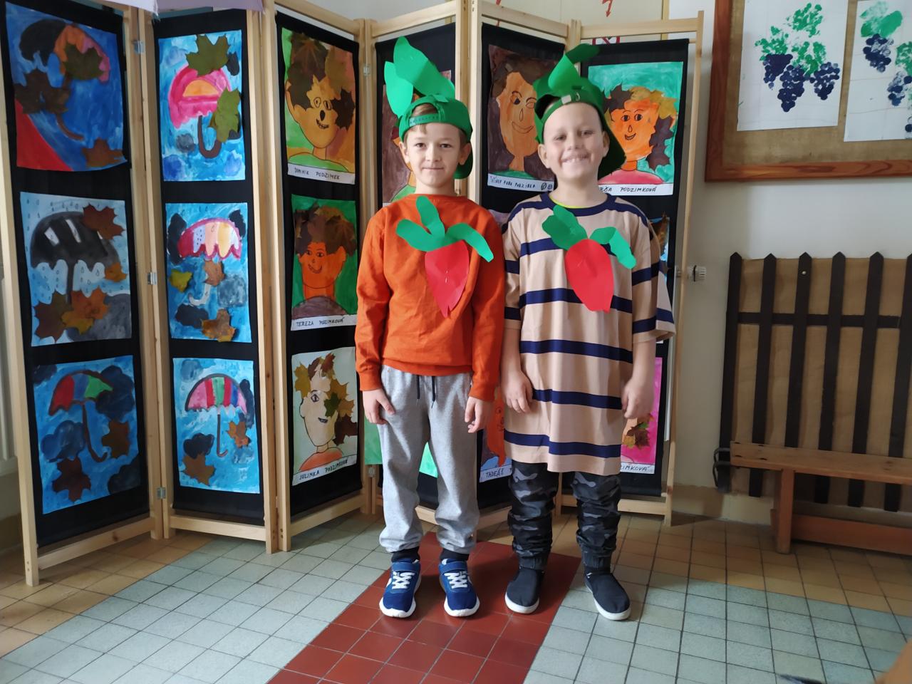 Při pracovních činnostech jsme si s mladšími žáky vyrobili podzimní modely na módní přehlídku.