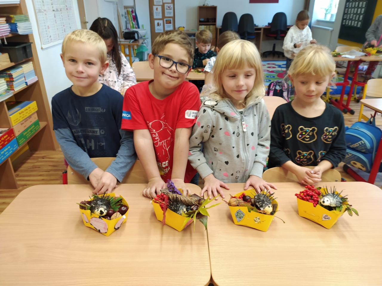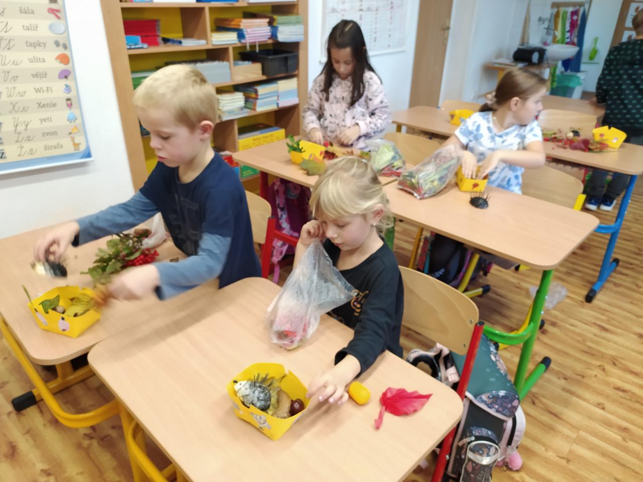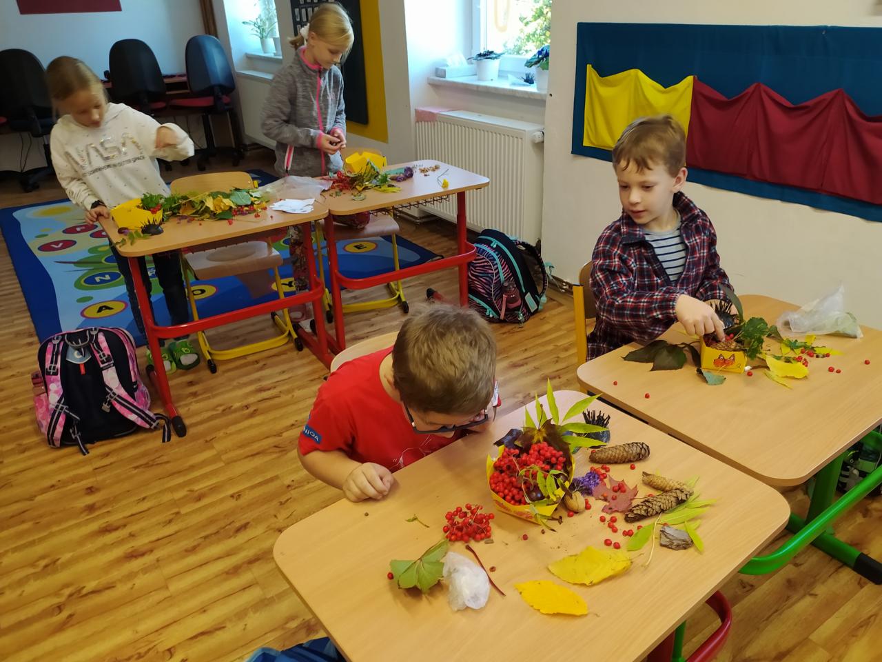 V rámci celoročního projektu "Rok v přírodě" také tvoříme výrobky z přírodnin s podzimní tematikou.