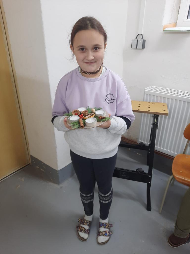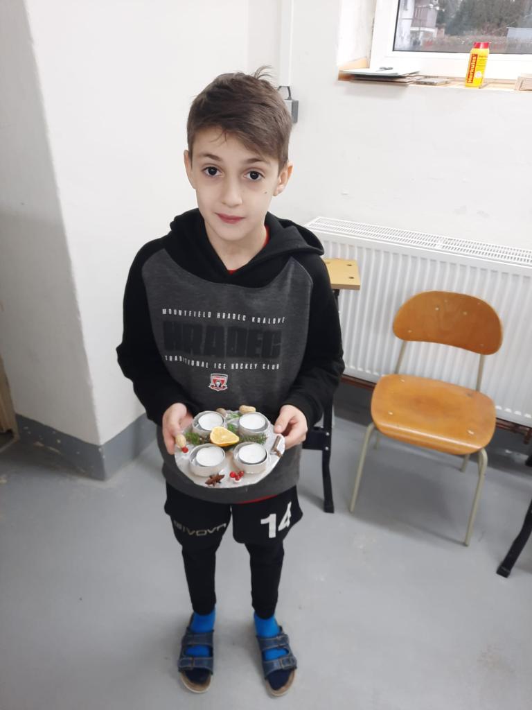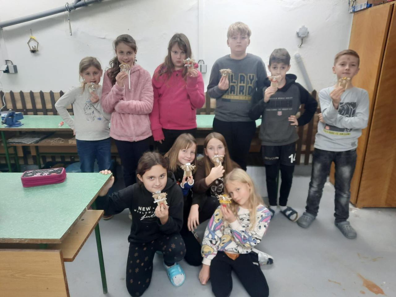 Pár fotek starších žáků s výrobky z pracovních činností.