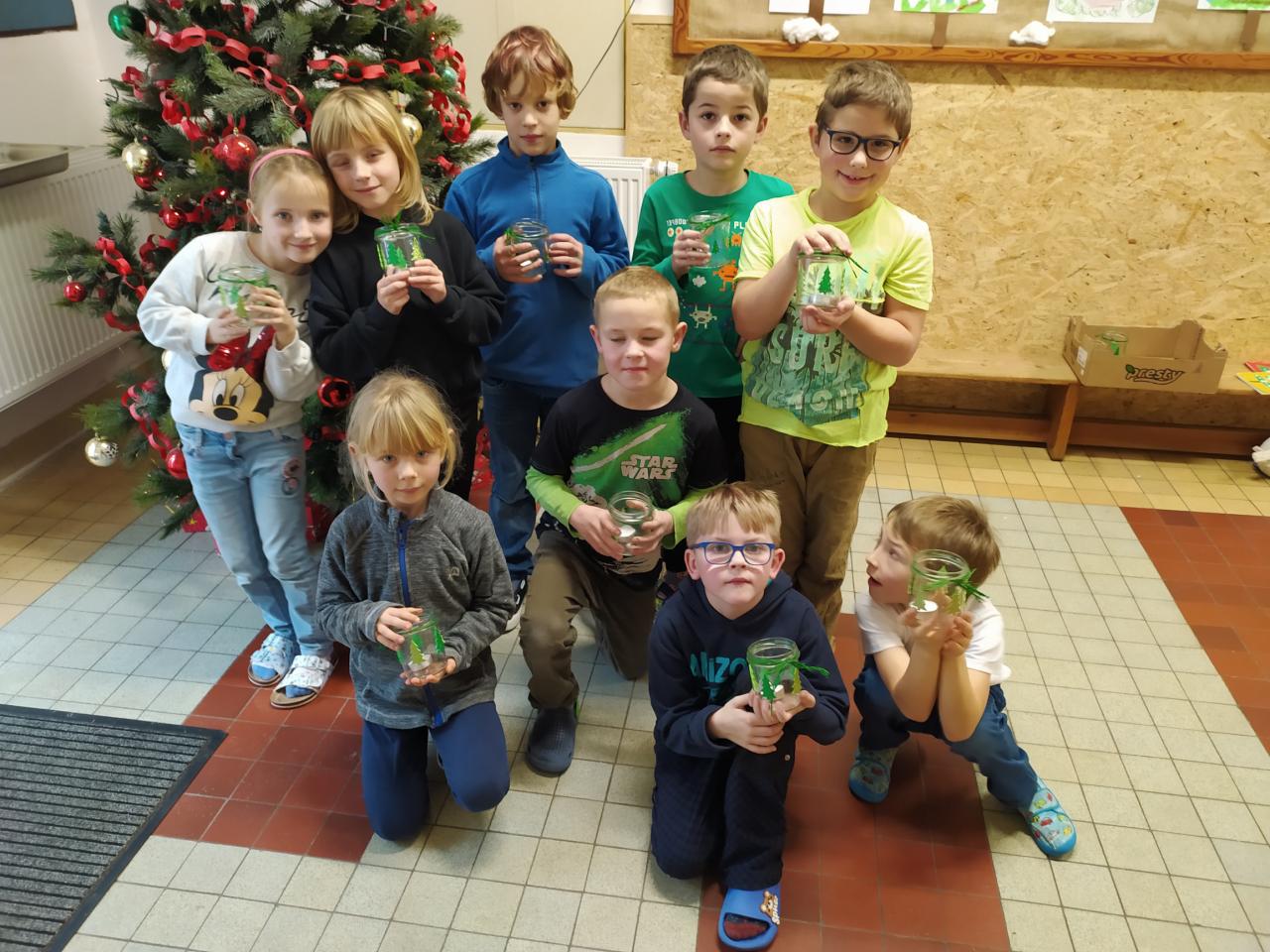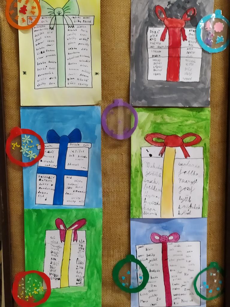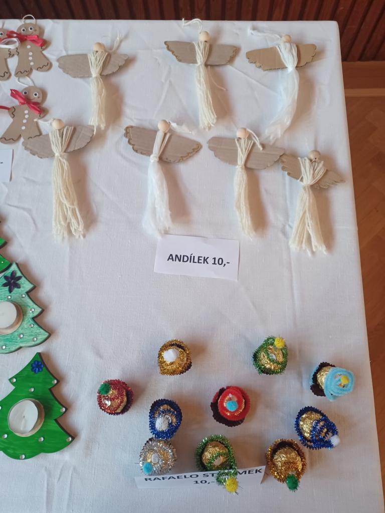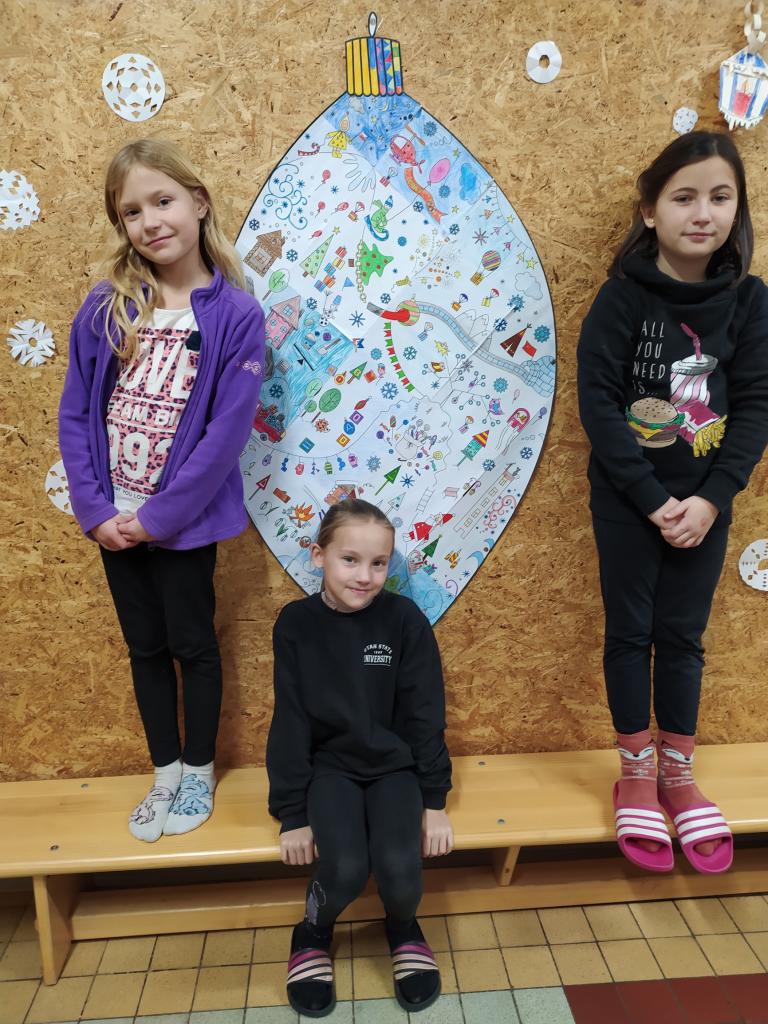 V prosinci jsme vyrobili nejdelší vánoční řetěz 23 m a největší vánoční ozdobu. Také jsme tvořili spoustu výrobků na předvánoční jarmark.