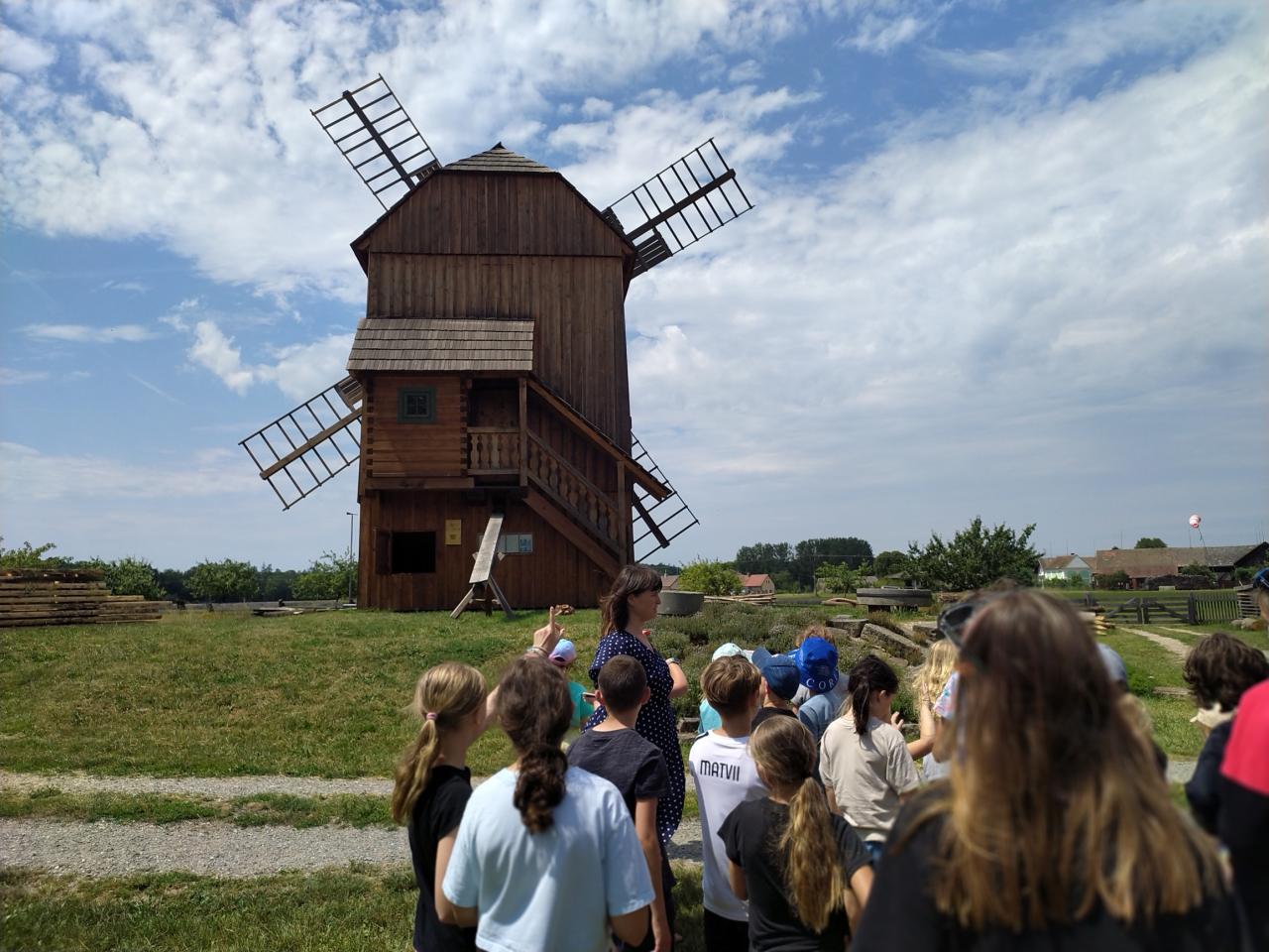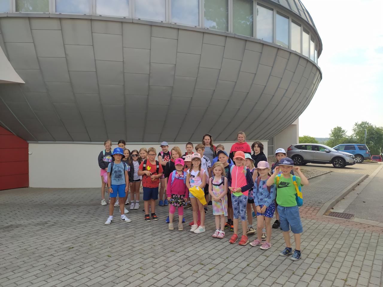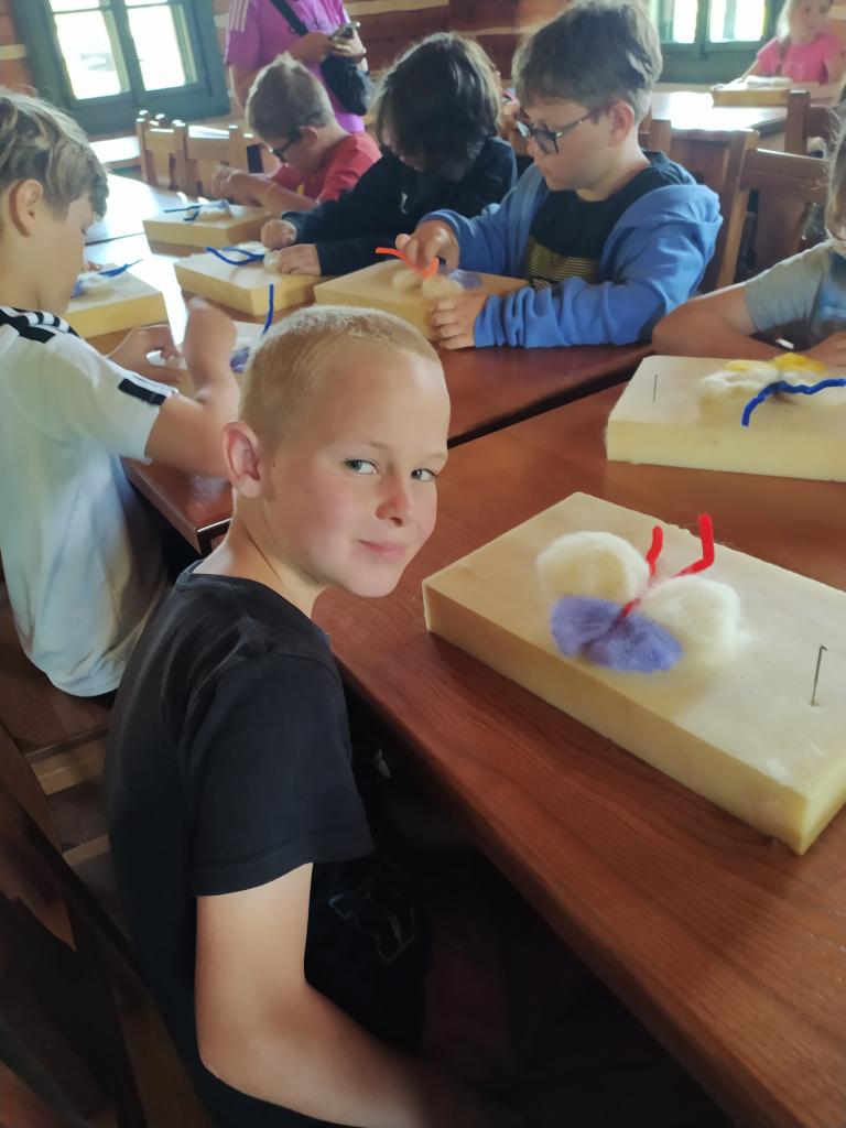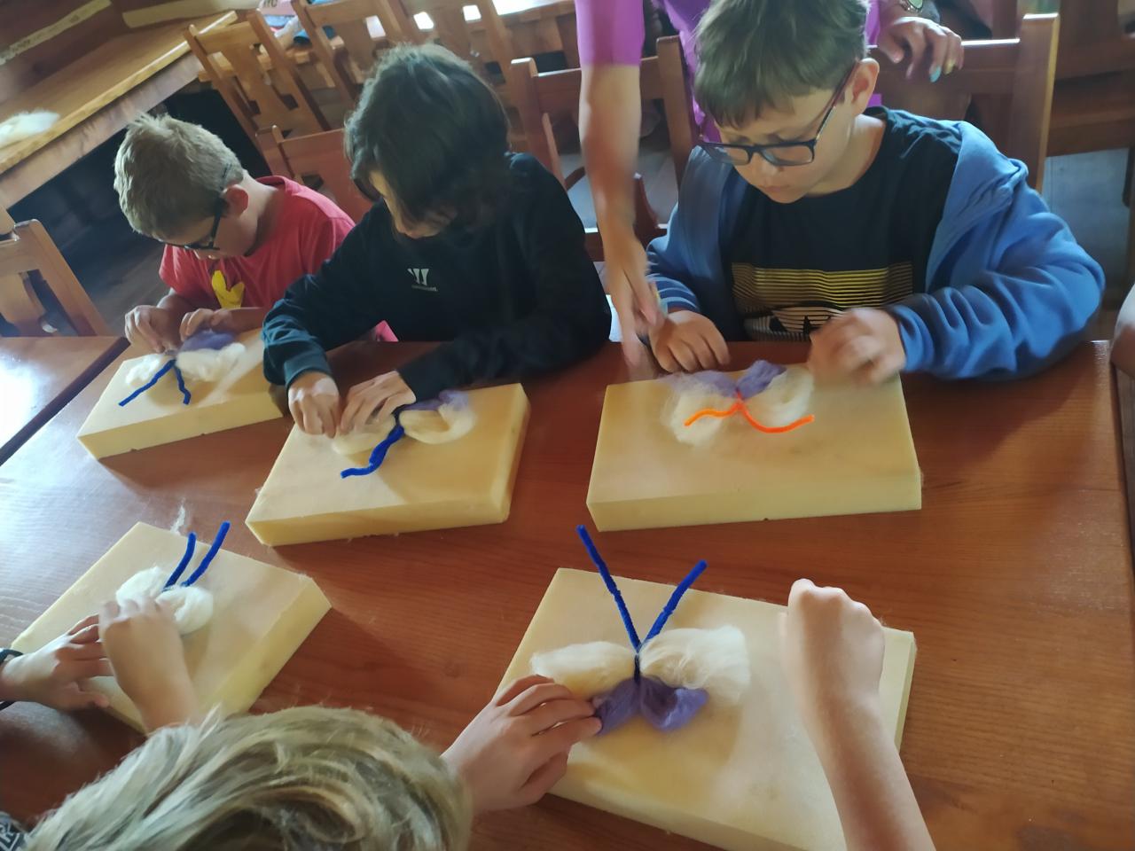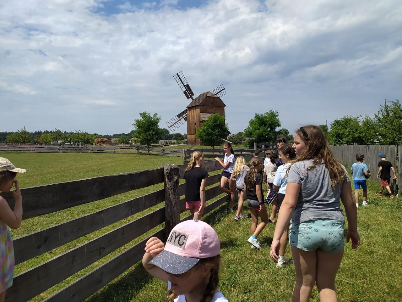 Na závěrečný školní výlet jsme vyrazili 19. června do Hvězdárny v HK. Potom jsme pokračovali do skanzenu Krňovice na program " Zpracování ovčí vlny".