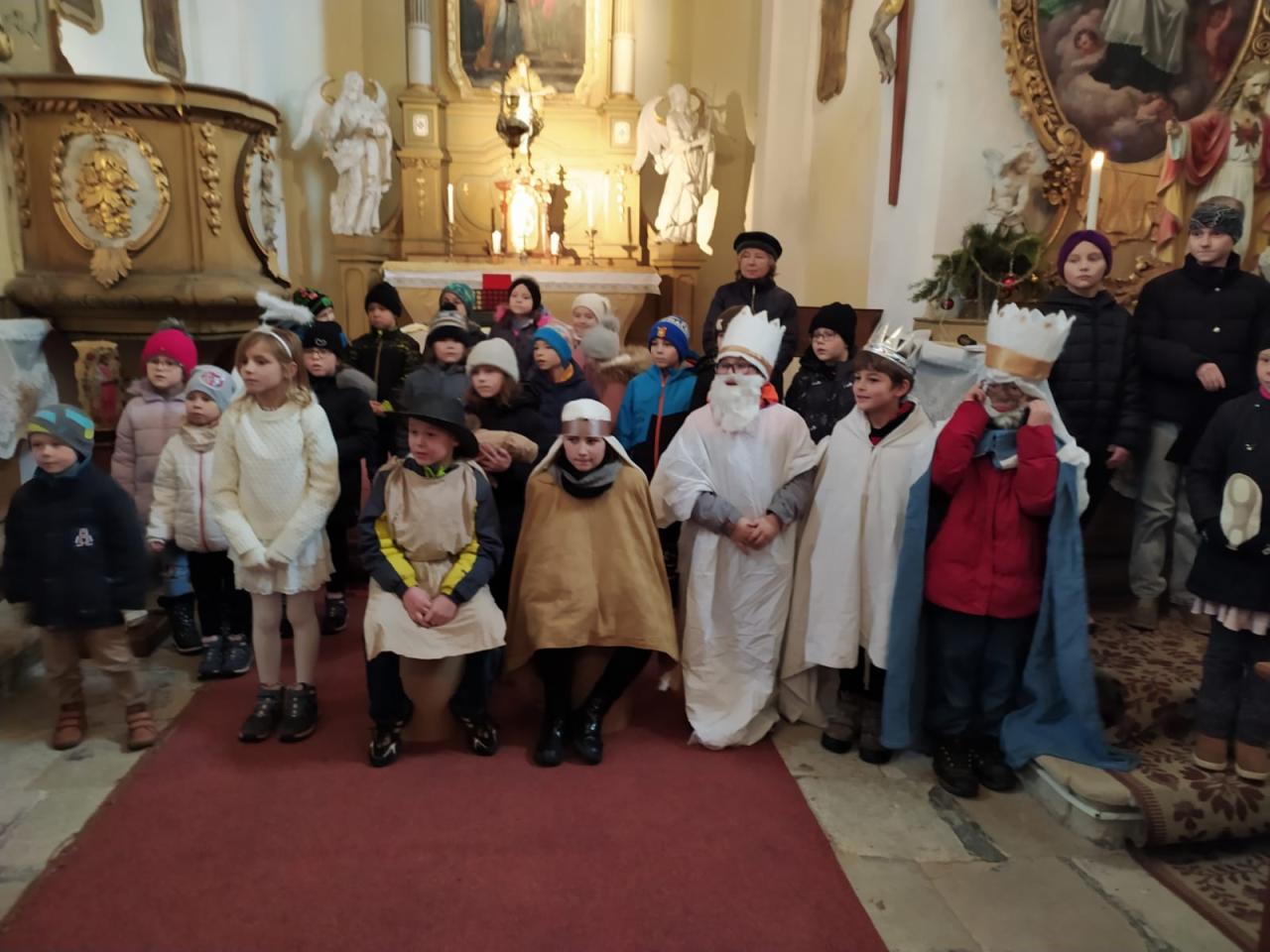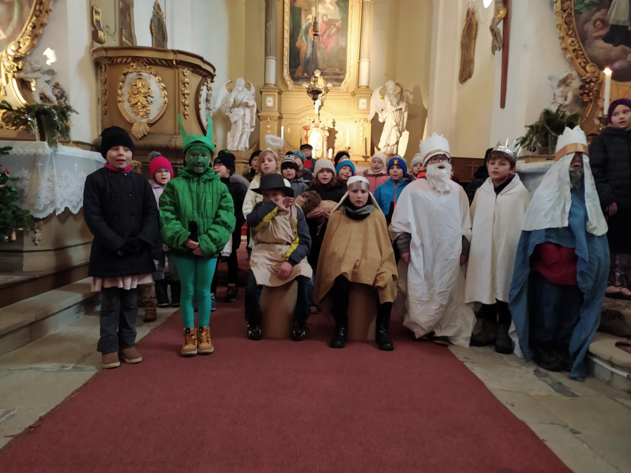 Seznámili jsme Ufíka s vánočními tradicemi, vzali jsme ho do kostela a povyprávěli mu o tom, jak to bylo s Ježíškem a oslavili jsme s ním Vánoce.